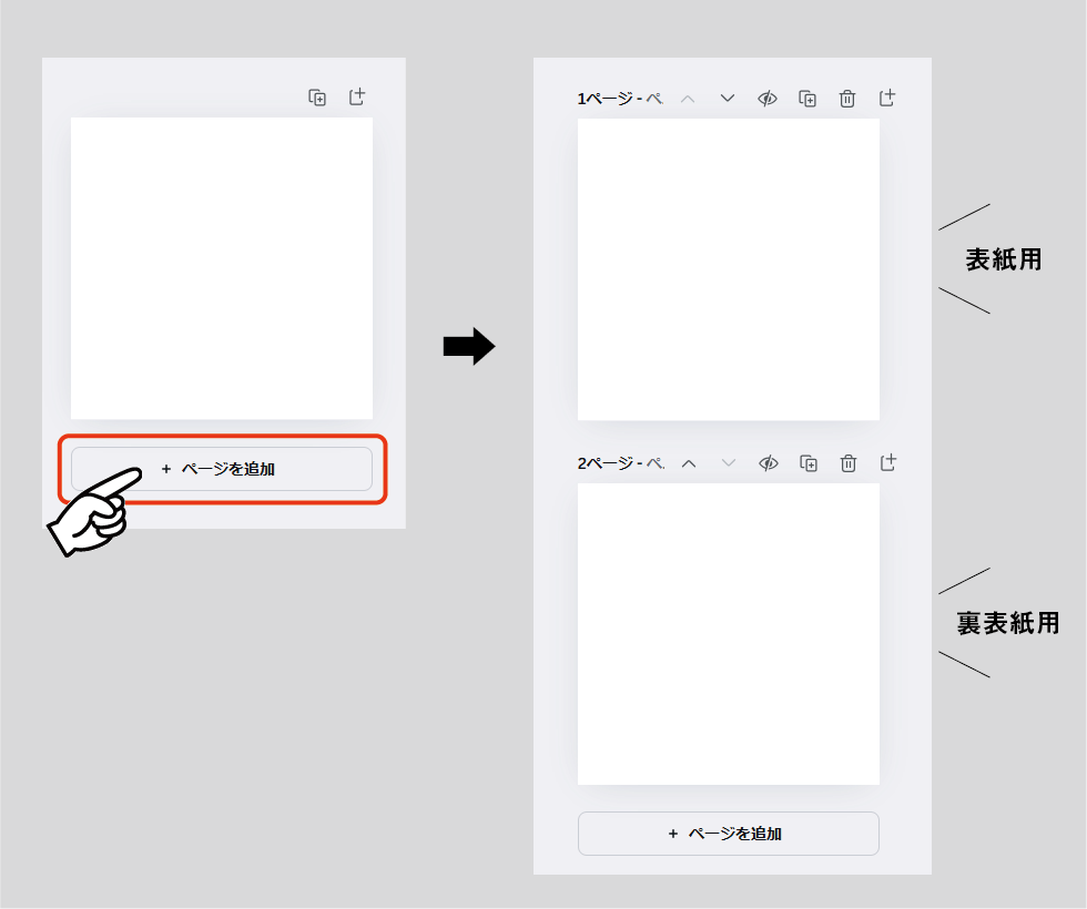②〔ページを追加〕をクリックして、必要な枚数分ページを追加してください。