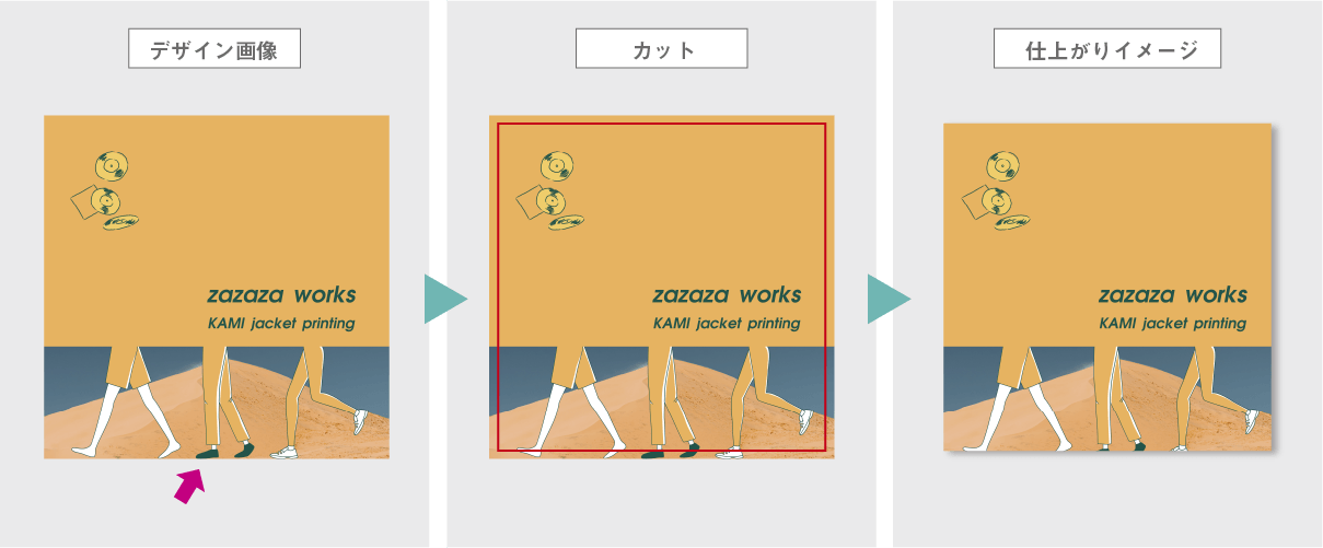 文字等の切れると支障のある情報は、なるべく画像の内側に配置をしてください。端に寄っていると、仕上がったときに切れる可能性がございます。